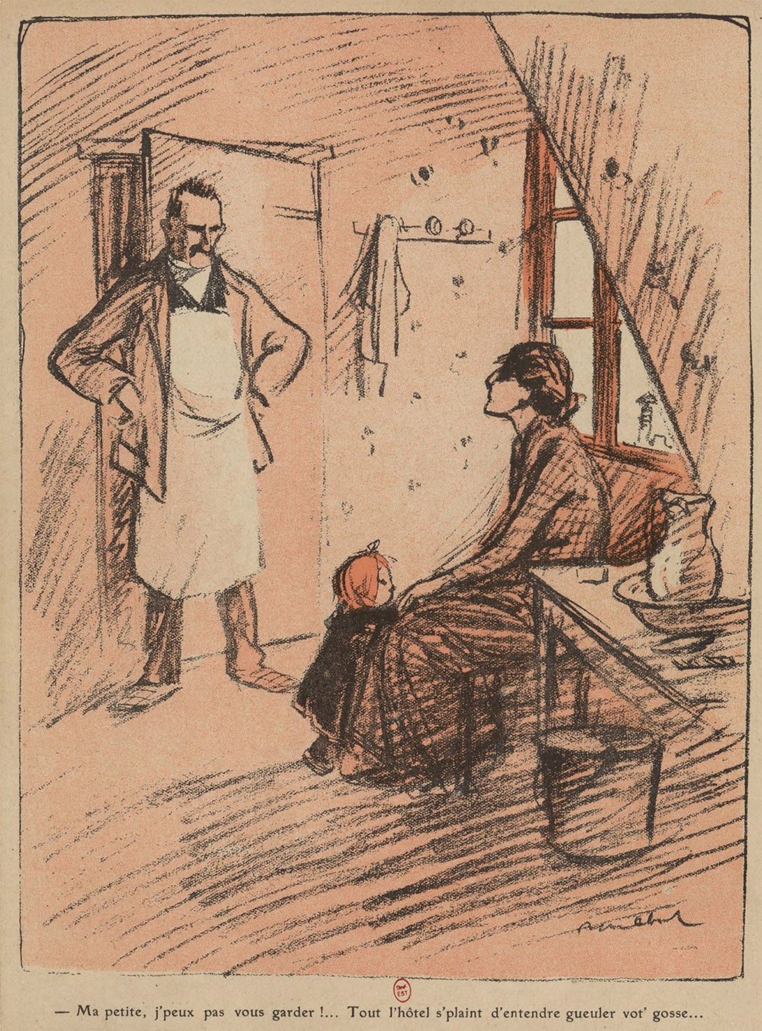 Francisque Poulbot (1879-1946) ist die Seele des Montmartre. Als Autodidakt tauchte er in das Herz des Pariser Volkslebens ein und fand sein Lieblingsthema: Straßenkinder. Aus dieser Immersion wurde der „Poulbot“ geboren – der Archetyp des Pariser Kindes: frech, einfallsreich und berührend. Ein Begriff, der seitdem in den allgemeinen französischen Sprachgebrauch eingegangen ist. Weit entfernt davon, sentimental zu sein, war Poulbots Zeichenstil ein mächtiges Werkzeug für soziale Kommentare, indem er die entwaffnende Logik seiner Charaktere nutzte, um die Heuchelei der Erwachsenenwelt aufzudecken.